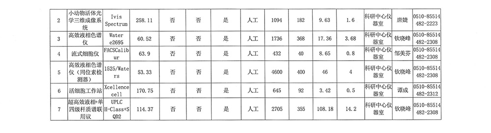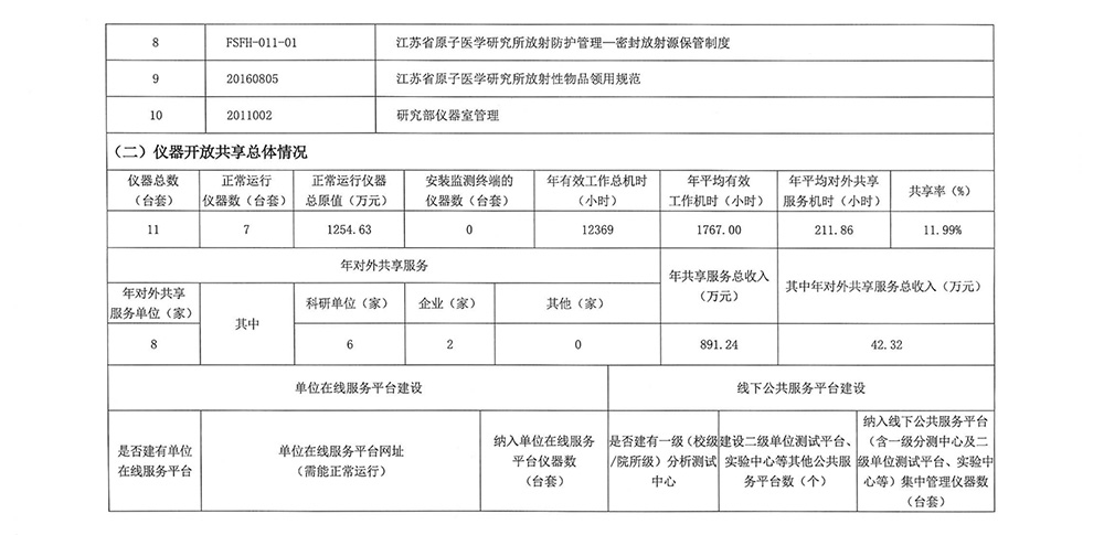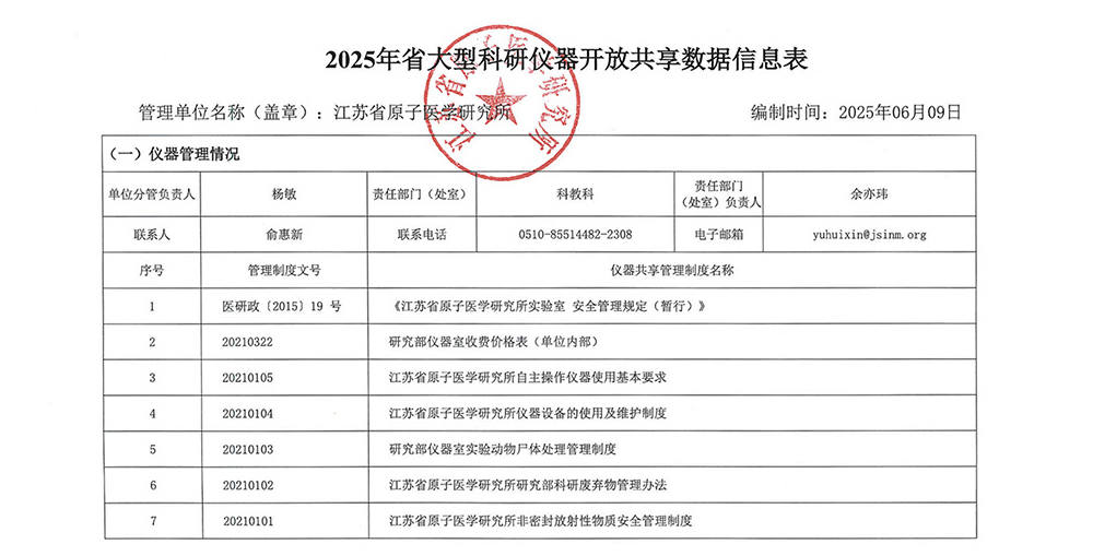 江蘇省原子醫學研究所2025年省科研設施與儀器開放共享數據信息表