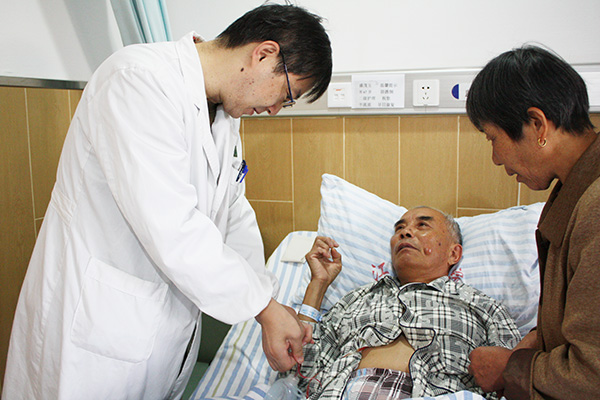 門診一天里,筆者幾乎沒有機會跟朱主任交流,直到下午4:05,暫時沒有患者進門。聽聞最近微信上有一篇很火的心酸作文,一個外科醫(yī)生的兒子抱怨爸爸在家愛睡懶覺,連狗都討厭他,朱主任一邊哈哈大笑一邊點點頭:“差不多也是這樣吧!一個外科醫(yī)生從參加工作到主刀一臺手術(shù)差不多需要十年才能成長起來,現(xiàn)在我一周兩天‘上臺’,以前還更多,要四天,開一天刀還是很吃力的。另外,每天都要查房,不管是周六周日還是節(jié)假日。”剛聊上這幾句,朱主任就被催著去參加一個關(guān)于醫(yī)院信息系統(tǒng)升級完善的工作會議了。