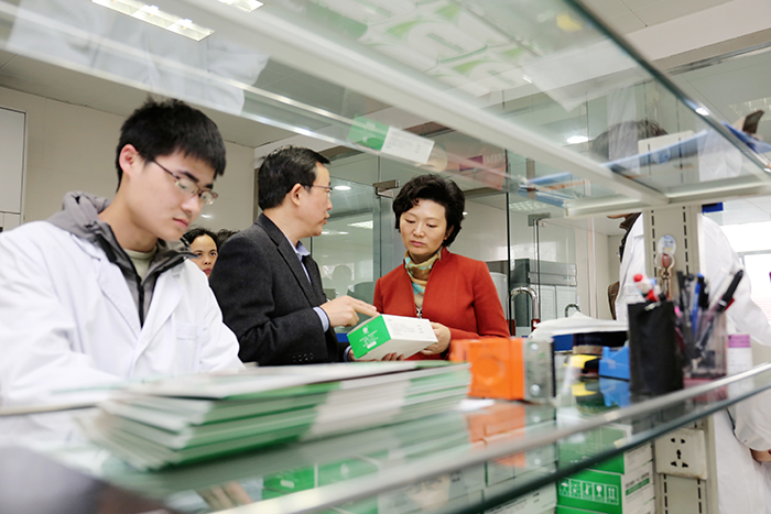 11月27日下午,江蘇省衛(wèi)生計(jì)生委主任、黨組書(shū)記譚穎在委辦公室主任戚興鋒、委人事處處長(zhǎng)祁愛(ài)平、無(wú)錫市衛(wèi)生計(jì)生委黨委副書(shū)記張文偉、委辦公室主任朱國(guó)富等陪同下,蒞臨我所視察指導(dǎo)工作。譚穎主任視察了我所研究部、回旋加速器中心、micro-PET實(shí)驗(yàn)室、生物醫(yī)藥研發(fā)中心等部門。謝敏浩所長(zhǎng)向譚穎主任匯報(bào)了我所近年來(lái)取得的成績(jī),介紹了我所“十三五”期間的發(fā)展規(guī)劃和愿景。譚穎主任對(duì)我所各項(xiàng)工作給予了充分肯定,鼓勵(lì)我所干部職工進(jìn)一步加大自主創(chuàng)新力度,攻堅(jiān)克難,為江蘇醫(yī)藥創(chuàng)新做出新的更大貢獻(xiàn)。