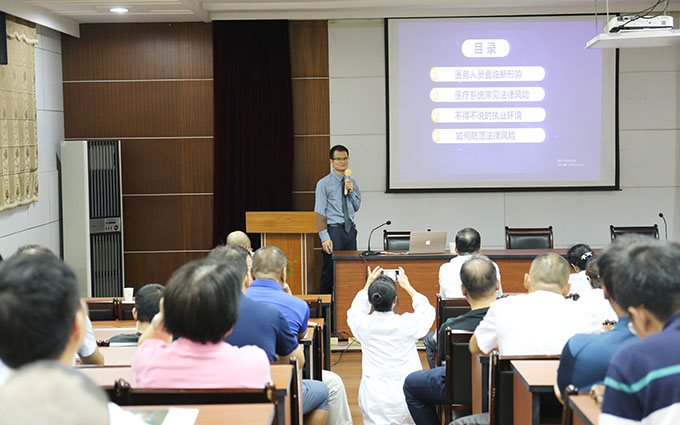 馬駿律師先從兩則關(guān)于無(wú)錫醫(yī)療系統(tǒng)內(nèi)違法違紀(jì)案件的通報(bào)說(shuō)起,從反腐力度加大、全面深化改革、社會(huì)風(fēng)氣不佳、制度弱化幾個(gè)方面分析了醫(yī)務(wù)人員面臨的新形勢(shì)。接著,解讀了近年來(lái)三起江蘇省內(nèi)衛(wèi)生計(jì)生系統(tǒng)違紀(jì)違法典型案例,以案釋法闡明了醫(yī)療系統(tǒng)常見(jiàn)的法律風(fēng)險(xiǎn),重點(diǎn)講解了職務(wù)受賄、非國(guó)家工作人員受賄、單位受賄的法律含義,用“身邊事”警醒“身邊人”,引導(dǎo)大家明鑒得失,清除模糊認(rèn)識(shí),規(guī)范從業(yè)行為,告誡大家要“學(xué)一點(diǎn)法律常識(shí)、懂一點(diǎn)自我保護(hù)、知一點(diǎn)法律敬畏”。